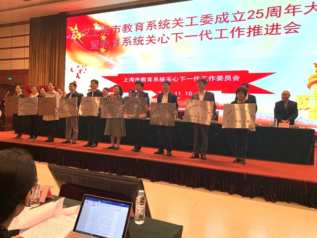 会上,为弘扬曾经在关心下一代工作中做出突出贡献的关工委老领导无私奉献精神,凝聚人心激励后人,特设立了“上海市教育系统关心下一代工作终身荣誉奖”以示敬意,并对近年来在上海市教育系统关工委关心下一代工作岗位上兢兢业业,不辱使命,作出重要贡献的先进集体、先进工作者、基层五好关工委组织、高校优秀特邀党建组织员等进行了表彰。