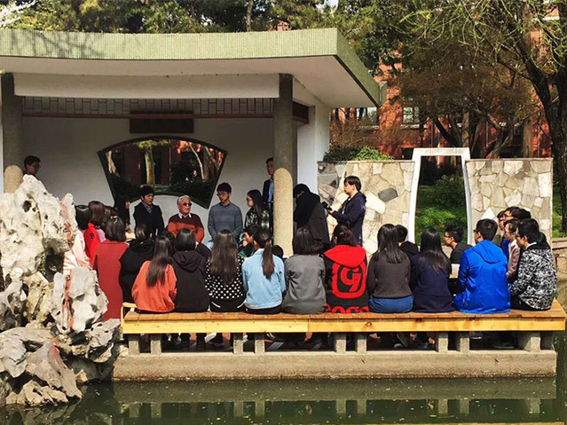 当天,复旦园鲜花盛开,春意浓浓。30余名生科院本科生集合在学院的29位院士群像前,在陈永青老师带领下,从生物楼步出,来到美丽的复旦书亭一角“曦园”,学员们紧围着老教授,倾听一位老共产党员,在复旦行走60年有余的老复旦人讲述他“走过的改革开放四十年”的亲身经历。