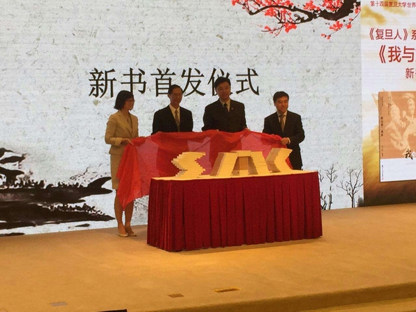 复旦大学党委副书记刘承功、外联处处长潘俊、市卫计委副主任赵勇与张永信教授一起为新书揭幕。