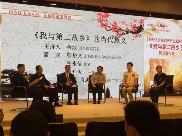 5月27日,复旦大学110周年生日,下午2点,由华山医院张永信教授亲笔撰写的回忆录《我与第二故乡》在复旦大学光华楼东辅楼首发,上医校友会会长彭裕文教授主持了新书发布会。