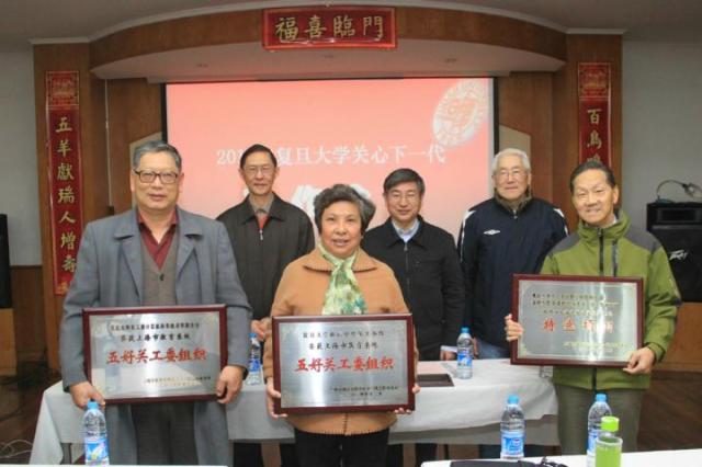 会上,学校党委副书记、校关工委会长陈立民等同志向荣获2014年度上海市教育系统关工委先进集体和个人颁奖。计算机科学技术学院、复旦大学附属中学被评为上海市教育系统“五好关工委”;复旦大学附属儿科医院的“名师为范厚德载物探索关工委工作新机制”被评为上海市教育系统关工委“特色项目奖”;《医院关工委工作机制实践创新研究》课题,荣获“成果奖”;宋大新(生命科学学院)、朱宝年(护理学院)、罗秀妹(经济学院)被评为“优秀特邀党建组织员”。之后,陈立民副书记在讲话中,充分肯定2014年度校关工委和特邀党建组织员所取得的工作成绩。并对2015年工作提出新的要求。希望认真学习领会习近平同志在会见全国离退休干部先进集体和先进个人代表时的重要讲话精神,落实全国和上海市离退休工作“双先”会议精神,要发挥老同志老党员的政治优势、经验优势、威望优势。希望学校关工委认真落实2015年提出的工作要点,围绕学校中心工作,面对大学生和青年教师(医师)群体,把握践行社会主义核心价值观和加强意识形态工作的重点,相信两级关工委一定会发挥更大作用。同时,希望基层党组织关心老同志,支持关工委开展工作。