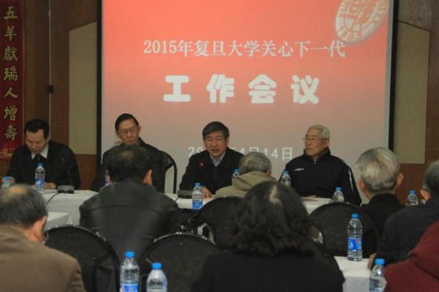 2015年4月14日,在复旦大学老年活动中心,复旦大学关工委召开2015年关心下一代工作大会。出席会议的有,学校党委副书记兼校关工委会长陈立民、老干部处处长邵瑜、关工委常务副会长张永信、顾问钱冬生、校关工委副会长、各关工委分会副会长和特邀党建组织员等50余人。关工委副会长陆昌祥主持会议。
