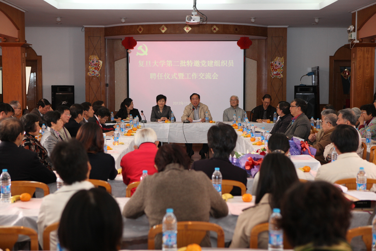 秦莉萍同志代表党委宣读了第二批18位特邀党建组织员名单(详见附件),新聘任的特邀党建组织员接受了聘书。化学系袁竹书、信息学院姚佩玉2位同志代表首批特邀党建组织员在会上交流了工作经验和体会,他们从发展谈话、材料审核等具体工作环节入手,对学生党员发展中的问题作了深入分析,为即将开展工作的同志提供了很多有益的经验。生命学院蒋蕾同志也介绍了学院与特邀党建组织员密切配合展开工作的情况,以及从中获得的经验和收获。另外关工委钱冬生同志就组织老同志开展“帮助大学生党员学习党建基本理论,提高党员修养”的专题调研做了介绍并讲话。