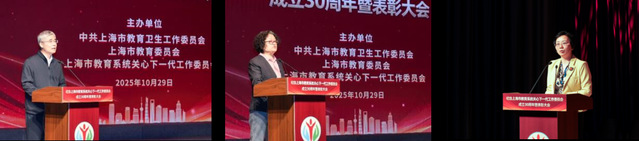 2025年10月29日,以“心系下一代”为主题的纪念上海市教育系统关心下一代工作委员会成立30周年暨表彰大会,在于漪教育教学思想研究中心隆重召开。教育部关工委主任李卫红,上海市委组织部副部长、老干部局局长、市关工委常务副主任王庆洲,上海市教育卫生工作委员会书记江帆、上海市教育系统关工委主任李宣海等领导出席大会。我校关工委常务副主任陈立民、关工委副主任陆昌祥、秘书长俞胜南参加会议。