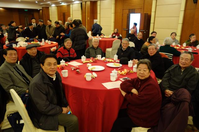 在阵阵掌声和欢笑声中,老同志们与市教卫领导共同欣赏了由音乐学院师生和同济大学老年艺术团献演的集“吹拉弹唱”为一台的精彩多姿的文艺节目。老同志们边看节目,边共叙友情,当看到久未见面的老朋友、老知交、老同事时,惊喜万分,相互问好、拥抱、拍照的场面比比皆是,会场内始终喜庆洋洋,充满着祥和、喜庆、团圆的气氛。当老领导们得知今天是原上医老校长姚泰的生日时,更是喜形于色,纷纷举杯,以茶代酒,送上“生日快乐”歌表示祝贺。