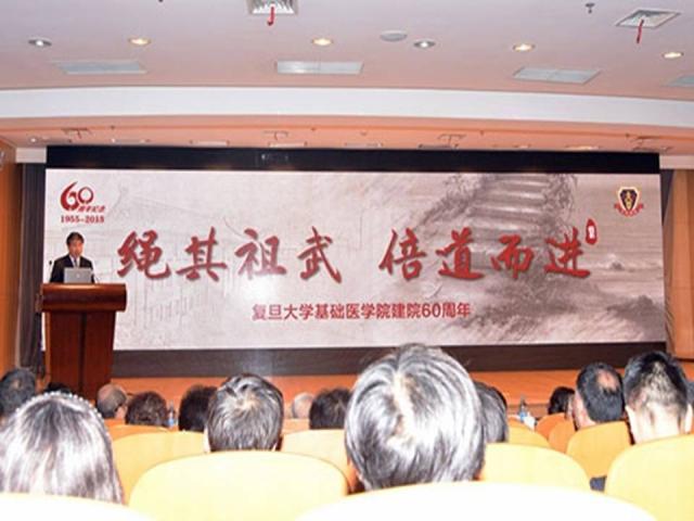 金秋送爽,枫叶遍红。9月17日,“绳其祖武,倍道而进——复旦大学基础医学院建院60周年大会”在枫林校区明道楼隆重举行。六十载时光荏苒,六十载风雨兼程,六十载薪火相传,上医人谨遵“正谊明道”校训,励精图治,严谨治学,勤耕不辍,为国家医疗卫生事业发展培育了一代代优秀医学人才,做出了突显的贡献。复旦大学副校长、上海医学院院长桂永浩,校党委副书记、纪委书记袁正宏和副校长张志勇出席大会。出席大会的还有原上海市副市长、基础医学院院长左焕琛,中国工程院院士、上医55届校友、原军事医学科学院院长秦伯益,中国工程院院士、基础医学院病原生物学系教授闻玉梅,原上海医科大学党委书记萧俊,原上海医科大学校长、基础医学院院长姚泰,原上海医学院党委书记、校友会副会长程刚等基础医学院的老前辈、师生代表等。离休干部郭晓燕、曹小定、沈静、张建国、于其芬、李彩娟等应邀出席。