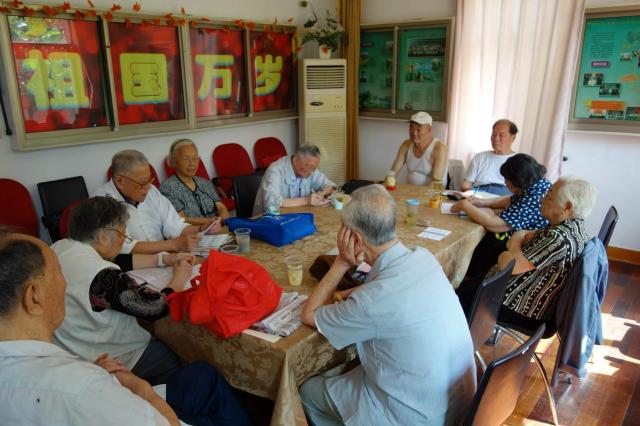 老同志们你一言我一语交流甚欢,思维活跃,眼界开阔,话题丰富,所释放出饱满的精神,阳光的心态彼此感染,形成了乐观向上、快乐欢愉的正能量。总支书记郭晓燕将在暑假期间举办的上海书展中关注到的一套由上海市学习型社会建设服务指导中心主编、复旦大学出版社出版的《今天我们如何做长者》丛书向老同志做了推荐。“热爱生活,老有所依,做健康长者;淡泊名利,老有所乐,做快乐长者;勤于思考,老有所学,做智慧长者;言传身教,老有所为,做风范长者”,这套丛书将老龄化社会的现实与提升老龄化社会的品质联系起来,将关心老年人与提升老年人结合起来,将生活质量提高与素质提升对接起来,有助于老同志在弘扬正气、凝心聚力、引导社会心理、引领社会风尚、促进社会和谐等方面更好地发挥优势和作用,为党和人民事业的发展增添正能量。