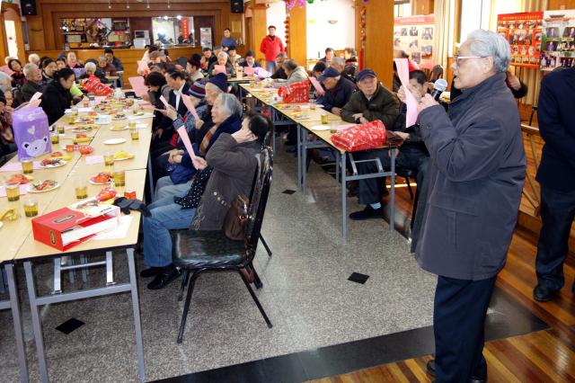 茶话会上,在中文系2014级学生党支部女声二重唱《映山红》和小合唱、舞蹈《红色娘子军》中拉开了载歌载舞喜迎新年的帷幕。中文系的学子演出结束后还代表支部里的20位同学,为老干部送上了新年的祝福礼物——他们自己制作撰写的精美贺卡和纪念品,表达他们对老干部的敬爱之心和深深祝福。老干部吴治华和爱人袁晚禾以及老干部家属陈俊翕老师表演的英文小合唱《你感动了我》和抗战时期流行的歌曲《歌唱放牛二小郎》,深受大家的欢迎。老干部于翠松老师的《龙凤呈祥》京剧表演、和老干部家属程云裳老师献唱的越剧《盘妻》等精彩节目博得阵阵喝彩。三区老干部工作人员以《春天在哪里》和《新年好》两首歌曲的现场演唱,表达了对全体老干部的新年祝愿。茶话会中间还穿插了抽奖环节。三位90岁以上的老干部分别为大家抽取了健康奖、甜蜜奖、幸福奖,使茶话会的欢乐气氛高潮迭起。最后,本场迎新茶话会在全体老干部和工作人员共同高唱《夕阳红》的优美歌声中圆满结束。