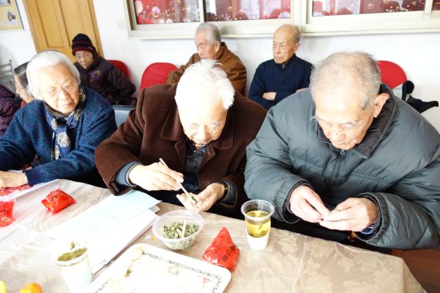 饺子起源于什么时候?南方饺子与北方饺子有什么区别?随着郭晓燕老师一个个有趣话题的抛出,引来了老同志们阵阵热议。“好吃不过饺子”,袁鸿昌老师是北方人,他说过年吃饺子是很普遍的习俗,大年三十吃饺子更有讲究,比如在饺子馅里放枚硬币,谁吃到来年会有福运,还有包几个白糖馅的饺子,象征着日子甜甜美美。总之,全家围坐在一起,包着饺子,拉拉家常,年味十足;94岁的沈静老师说,自己是在部队里学会包饺子的。记得在战争年代,烽火硝烟,食不果腹。一天部队领导提议包饺子改善伙食,因为我是南方人,只会包馄饨,在战友们手把手的指导下,包出了第一只饺子好似兴奋。擀饺子皮是一门技术,中间厚,两边薄,这样才好吃。沈老师还回忆道,1947年春,我到了山东鲁南,生活特别艰苦,当地有一种酸煎饼,刚刚烤出来时味道飘香,因为肚子非常饿,也就顾不了口感,其实这种食物是难以下咽的。山东老大娘很疼爱我们这些娃娃兵,经常会拿出家中藏有的山芋给我们吃,这在当时属于奢侈品,可见军民鱼水情深意浓;李建军老师是山东人,他讲述了包饺子的趣闻。在部队里,我是从做“饺子腿”开始的,也就是做饺子的搬运工,将别人包好饺子排排整齐,当学会包饺子后,我后来者追上,全面掌握了从和面、擀皮、剁馅到下饺子,成为了全能手。改良和自创的饺子馅有西瓜皮、豆角、马鲛鱼等等,口感独特深受战友们的欢迎;纪俊才老师吃过的饺子品种不计其数,但是70年前在胶东吃过的用豆虫馅包的饺子让他独有情种,咋听起来难以想象,也一定难以入口,不过经过他描述,确属高蛋白珍品,难怪讲得是那么津津有味;还有程刚老师介绍了70年代出差到大连,在火车上吃到过的对虾馅饺子。老同志们你一言,我一语,历数了饺子的历史,南北方饺子的差异。诸如:北方气候寒冷,饺子馅以肉食居多,有牛肉萝卜馅,猪肉酸菜馅,羊肉韭菜馅等,而南方气候温润,物产丰富,饺子馅有三鲜、虾仁、鱼肉等。在饺子的包法上也有区别,南“捏”小巧灵秀,北“挤” 敦厚豪放------。