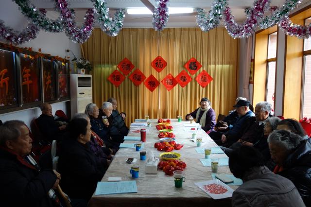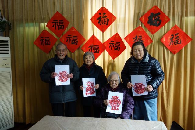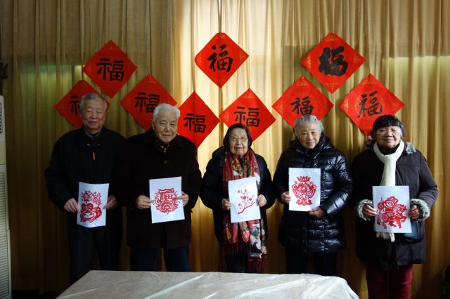 旧岁又添几个喜,新年更上一层楼。在参加饺子宴中,近20位老同志的平均年龄88岁有余,其中最年长就要数95高寿的张令仪了,前不久大病初愈的她依然神清气爽,容颜焕发,要不是左胳膊骨折还没有康复,献上一曲口琴吹奏乐那可是少不了的。来自2013级临床医学专业八年制学生们的新春祝福,让老同志们获得意外的惊喜,学生们挥毫书写出姿态各异的“福”字被悬挂在幕墙上,翰墨飘香,爱意融融;“年年有余”“雀上枝头”“福娃闹春”,一张张出自学生们之手的剪纸栩栩如生,灵动可爱,渲染出了红红火火的过年气氛;周熙悦同学写给郭晓燕老师的书信亲情浓郁,师生情深,她向郭老师汇报和分享了自己的成长感悟:“这学期我终于开始了期盼已久的医学专业课程学习,能够每周来枫林校区上课,聆听到许多优秀教师的授课,让我更加地喜爱上了医学。”“还有一件备受鼓舞的事情,就是我非常荣幸地被推选为了入党积极分子,党组织的肯定使我充满了干劲和进步的动力!”学生们的上佳表现令老同志啧啧赞誉道,如今的医学生可了不得,多才多艺,有情有义啊!这真是妙笔挥春送祝福,巧手剪纸贺新春,老少同乐喜开怀。
