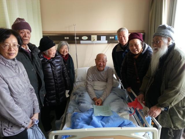边谈、边聊、边包,南北混杂、长相各异、裹着幸福的饺子被堆满在了盆中,似白胖胖的元宝翻腾在了锅中,当热腾腾香喷喷的饺子盛入碗中,老同志吃在嘴里,美在心里,在喜庆祥和的年味中又翻开了新年生活的新篇章。饺子宴结束后,老同志们还特意带上了几盒味美情更浓的饺子来到中山医院病房中,探望了汪枫叶、唐文华、朱守信、张镜如等老同志,大家庭的祝福和问候让病房充满着友情和温暖。