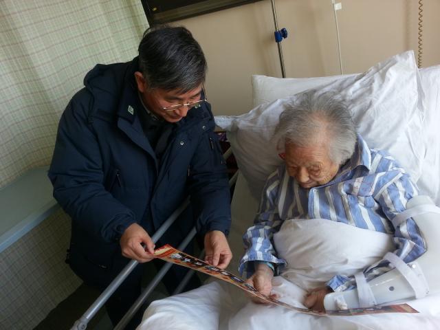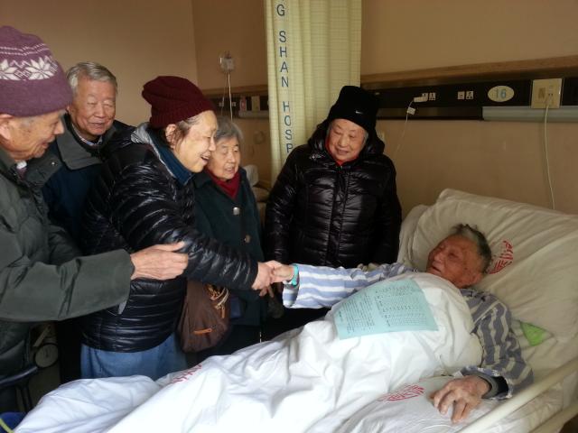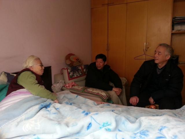 元月26日一早,冒着凌冽刺骨的寒风,陈书记率队与老干部工作同志走访了因病住在华东医院的老领导郑励志、王生洪和院士胡和生,向他们送上新春的祝福和诚挚的问候。在郑老病房里,陈书记亲切握着郑老的手,询问他近来的身体情况,当得知刚结束了一阶段的对症治疗,病情较为稳定后深感欣慰,并感谢医护人员的精湛医术和精心护理。92高寿的郑老去年底荣幸接受了日本国驻沪总领事代表日本国政府授予的“旭日中绶章”,表彰为日本研究、中日交流的高级人才,为增进中日友好、促进相互理解、密切中日关系所做出的突出贡献。会上他回顾60年从事涉日工作的精彩发言非常珍贵,为了留下这份资料,郑老尽管手上吊着针仍在伏案工作,还将整理好的《在日本驻沪总领馆授勋会上的讲话》送给了陈书记。医生和护理人员都说郑老“不安分”,只要条件允许,有机会他都会申请外出参加活动。陈书记怜惜地对郑老说,您的康健是我们的福分,一定要安心配合治疗,保重好身体。接着,陈书记一行又来到中山医院,探望了抗战老同志张令仪、卫桑、唐文华及上医老校长张镜如。每到一个病房,陈书记都会仔细询问老同志的病况,治疗进展和饮食起居,叮咛老同志天气寒冷,尽管病房内有暖气,但是病区走廊的温度比较低,如果下床活动,一定要注意保暖。还与张令仪老同志分享了新年支部团圆包饺子的合家欢照片,盛赞老同志们乐观的生活态度和健康的精神风貌。组织的关爱,新春的问候,深厚的情谊为老同志战胜病魔,早日康复增添了勇气和力量。下午,陈书记一行又登门拜访了枫林校区总支书记郭晓燕,感谢郭老师老当益壮,数十年如一日为党工作,充分发挥党总支组织、凝聚、引导老同志的作用,传递了正能量,为老龄事业做出表率,是我们学习的好榜样。陈书记还向郭老师汇报了学校继“三严三实”专题教育之后,将根据中组部的部署,在全校党员中开展“学系列讲话、学党章党规,做合格共产党员”为主题的党员学习教育活动,届时组织部会有具体的分类指导要求。郭老师向陈书记介绍了总支的工作及老同志的整体情况,针对“后双高期”老同志的现状,陈书记嘱咐老干部处的工作一定要做深、做细,创造条件用好资源更好地满足老同志的愿望和要求,在服务中体现组织的尊重和关怀。