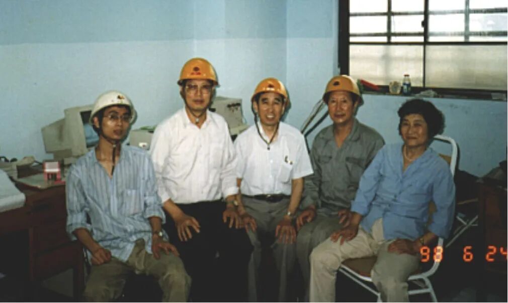 课题组部分成员与甲方部分同志在烘炉监控室合影(左起:孙煦峰、刘其真、何永保、马秉瑞、刘瑞凤)