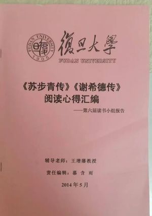 活动时间为每月月初周四晚上,安排两个小时,以学习讨论的方式,进行专题发言,导师指导,学习结束后写一篇总结,平时写读后感两篇。为鼓励学生学习积极性,我对成绩优异者都送本人其他著作签名本一册,向校刊推荐发表文章3篇,还组织宣讲小组到复旦网络学院宣讲,我们小组一共编印读书心得汇编8本,小组被评为先进,收到奖状证书两份。社会学系学生杨婧在申请表中说:“大一的时候,曾经参加过王教授的读书小组,中途因为课程繁多,不得不退出,有点遗憾,希望这一次能再次参加王教授的读书小组,对苏步青校长和谢希德校长有更多的了解。”