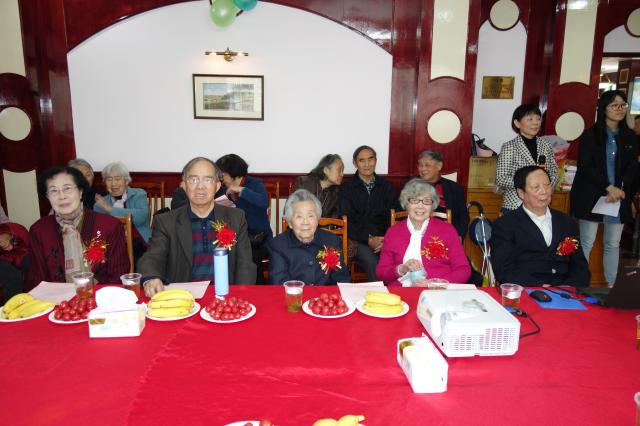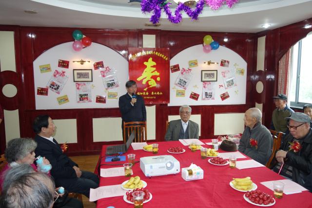 接着,周振汉老师代表邯郸校区老干部党总支送上祝福。他说,今天与老寿星们欢聚一堂,喜悦的心情不由得回忆起自己在复旦62年学习、工作、生活的岁月。看到国家的繁荣昌盛,学校的发展,无不令人鼓舞。我们老干部平均年龄高达近88岁,说明我们生活在一个大好时代。党和国家十分重视和关心老干部工作,学校党委和老干部工作处,更是将老干部的各项政策及时落实到位,并带着真情和爱心做好各项服务工作,让老干部们的生活无后顾之忧。作为老干部,应深怀感恩之心,力所能及地为学校工作发挥余热,为党的事业增添正能量。祝今天在场的寿星和全体老干部“人人长寿过百岁,福如东海长流水!”