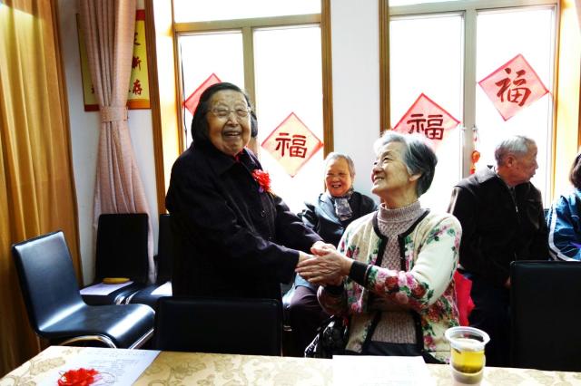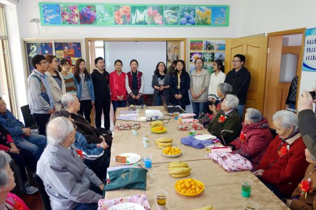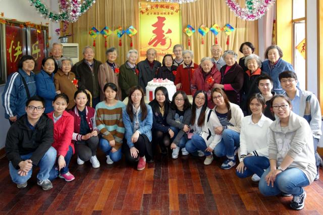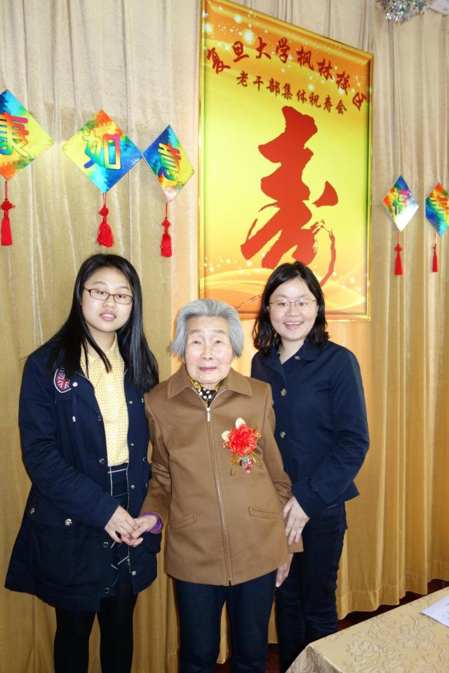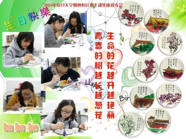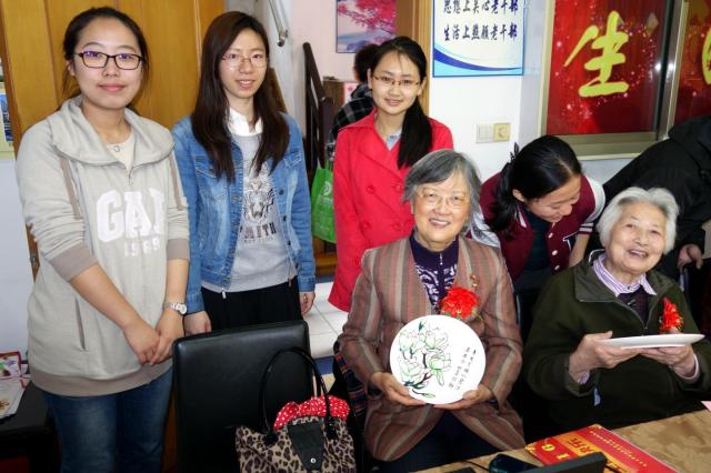 又是一年芳草绿,又迎一度春光美。与枫林校区老干部党总支结交互动,并且已经有三年之久的上海医学院2013级临床医学八年制一班的13位学生来到了祝寿会,带来了对前辈的感激、对生命的感恩和对生活的感谢,老少相聚,为祝寿会带来了青春活力和家的温馨。学生送的礼物非同寻常,在“遐龄瓷盘”上,手绘出的上海医学院一号楼和校园盛开的白玉兰栩栩如生,老寿星们的名字都被隐匿在藏头诗中,“静水流深怀贤德,一杯祝寿比庄椿”是沈静奶奶,“晴风萧萧贺俊彦,喜祝松岭万古春”是萧俊爷爷------,老寿星们仔细端详,欣赏着学生们的杰作,内心别提有多高兴了。学生们还准备了短小精悍的节目助兴,祝寿会场爱意浓浓,喜气洋洋,欢笑声不断。