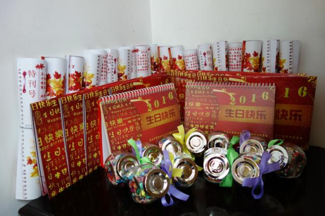 人逢喜事精神爽,寿庆古稀添荣光。每年四月是枫林校区老干部的集体祝寿月。在祝寿会临近之前,老干部们纷纷写下了心中祝福和希望寄语,当张张《生日特刊号》呈现在寿星们的眼前时,惊喜之余倍添幸福。伴随着欢快的乐曲,荧屏上一组组寿星们照片吸引住了大家目光,流淌的岁月,美好的时光,熟悉的场景,甜蜜的笑容,五年弹指挥间,重温珍藏在老干部大家庭集体相册中的照片,看着依然是令人怦然心动,那人、那事、那景仿佛就像是在昨天。老寿星们还欣喜地收到了老干部处为他们亲手制作的特色生日贺卡,尤其是94岁的沈静和陈放同志,作为寿星之“星”,得到的是为他们专门定制的贺岁台历,台历集亲人、老同志们、医学生及校园风光照片为一体,衷心祝福老寿星的每天都能健康、充实和快乐。