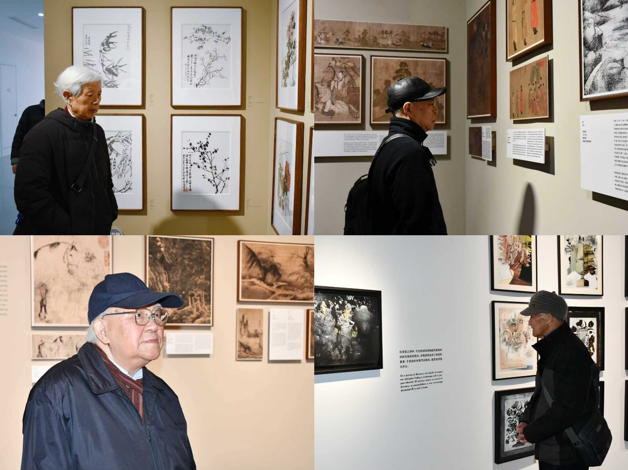 理论学习结束后,老同志们移步艺术馆展厅,依次参观了紧扣时代主题、展现文化传承与创新的艺术展览。第一展厅“图画真解——中国画笔墨的演进”展览用现代学术语言和国际视野解析传统笔墨,引领观众透过笔墨之精妙,领略中国传统文化之美,与习近平总书记强调的推动中华优秀传统文化传承发展精神高度契合;第三展厅“露茜安·芳塔娜:花束附录”展览以抽象而富含哲思的“花束”剪影作品,探讨生命、战争、爱与慈悲等人类共同命题,其创作中流露出的东方美学韵味及对中国文化的借鉴,给老同志们留下了深刻印象。各位老干部一致认为展览生动体现了文明交流互鉴的魅力,为理解构建人类命运共同体理念提供了艺术注脚。