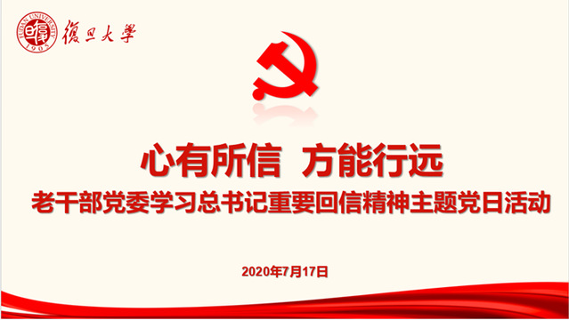 大家首先一起观看了《心有所信 方能行远》的专题微党课视频,在微党课中焦扬书记祥细介绍了如何带领复旦人,坚定理想信念,学思践悟,奋发有为走好新时代的长征路。