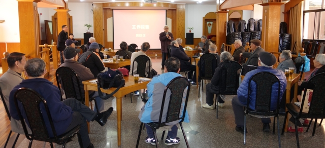 会上,邯郸校区老干部党总支书记周振汉受老干部党总支委托,向大家报告三年来的工作情况。他说,首先感谢校领导们对老干部们的关心和重视,感谢学校有关部门为老干部们的热情服务!本届党总支于 2014年3月换届以来,经历了3年的时间。现有党员53人,平均年龄约89岁,设有5个支部(4个离休支部、1个退休支部)。今天迎来了新的换届选举。